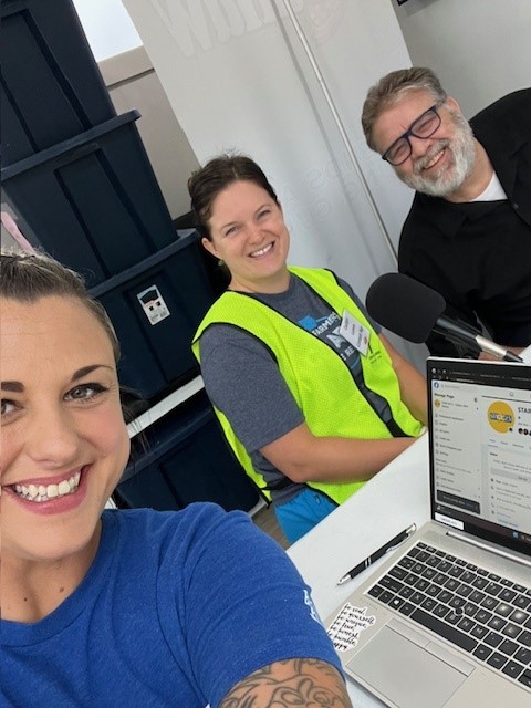 We were also fortunate to have several in-person contributions during our inaugural, day-long “Rock-In” event at the Food Bank of Iowa on the final week of the campaign, in which we broadcasted live from 6 am – 6 pm, and also each pulled volunteer shifts, helping to fill the backpacks we raised money to create.